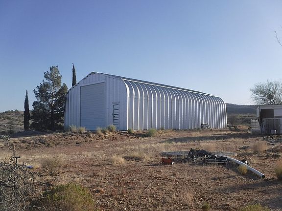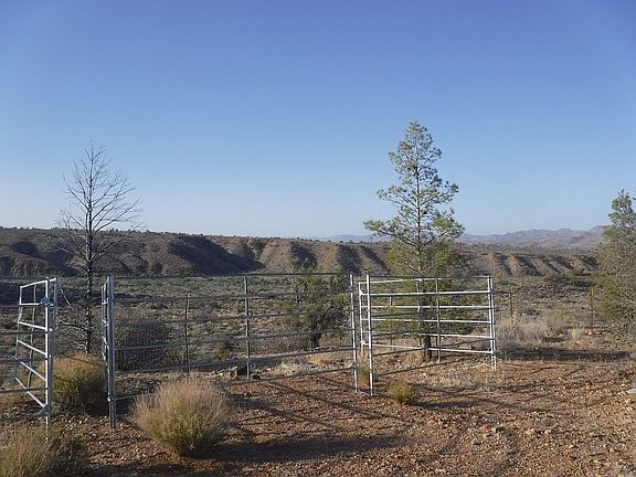 Beautiful 40 property with a 30 by 60 ft by 18 ft high Quanset style metal building enclosed with fencing around 3/4 acre. Building has a concrete floor inside as well as outside on both ends of the building, and a 10 by 14 ft high rollup door in addition to 2 walk through doors. The building is plumbed for sewer and water and has a septic system. Water is available from a shared well on an adjacent property piped into a 1500cuft storage tank. Located just 4 miles east from AZ Hwy 93 and about 12 miles south of I 40 this place has Spectacular views of both the Hualapai and Aquarius Mountains with abundant wildlife such as deet, javelina and quail. Build your off grid home or bring your RV here and have plenty of storage or work area for your Quads.