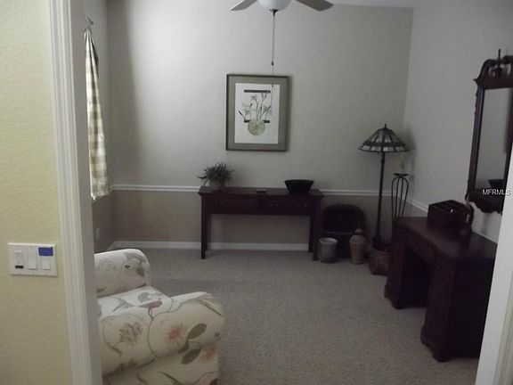 Very nice 2 bedroom, 2 bath home with den in Del-Webb Spruce Creek. Very open floor plan that flows nicely from the kitchen to the living room to the dining area. Living room has a very comfortable seating area and features a 32" flat screen TV. Master bedroom features a queen bed and master bath has dual vanity sinks, walk in shower and tub. Second bedroom has a twin bed and closet storage. Third bedroom is locked off for owner use. Home has inside laundry and a nice size 2 car garage. Living room area opens to a large screened in Lanai with nice privacy. Del-Webb has a variety of activities to make your stay very comfortable.
