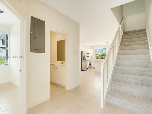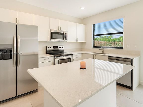 Modern 3BR/3BA townhouse in Lennar's Corsica community. Prime location near Baptist Hospital, Homestead Air Reserve Base, and Homestead-Miami Speedway. Beautiful corner unit with plenty of natural light. Open kitchen with stainless steel appliances, white quartz counters, and sleek cabinetry. Spacious living room with bay windows. Upstairs: master suite with walk-in closet, two guest rooms, full bath, and laundry. Community pool and clubhouse. Close to schools, shopping, dining, and major highways. Move-in ready with brand-new appliances.
