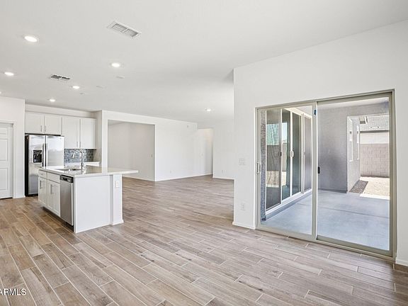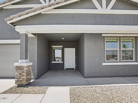 This Craftsman style Topaz home boasts 2,488 sq ft of living space, featuring 3 bedrooms, 2.5 bathrooms, a 3 car tandem garage, a separate den, and ample storage throughout. The open concept kitchen is perfect for entertaining family and friends with the kitchen featuring Fairview white 42'' upper cabinets with polished chrome pull cabinet hardware, Zelige Cielo 4 x4 backsplash, beautiful crisp stria quartz countertops, stainless steel gas stove, and a walk in pantry designed with an organizer's dream in mind. You'll love the 4-panel center meet sliding glass door that utilizes the indoor and outdoor flow for a bright airy feel, 9' ceilings and vicinity natural 6 x 36 plank tile flooring. The Amarillo Creek community is conveniently located near Route 347 for easy commuting to Phoenix, Chandler and Mesa. Just minutes away from an array of dining, shopping and entertainment options that Maricopa has to offer. Don't miss out on this beautifully appointed turn key home!