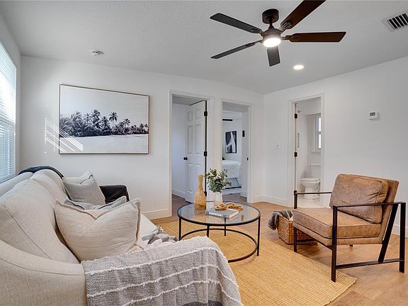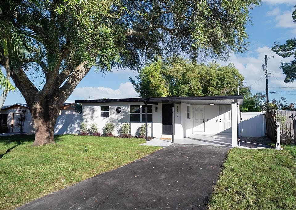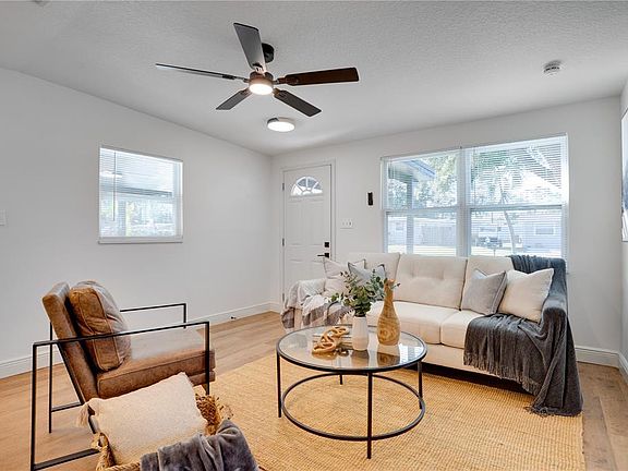 This beautifully updated 2 bedroom, 1 bath Largo home offers easy living with fresh LVP flooring, a completely updated, modern bathroom and a stylish kitchen featuring stone countertops, stainless steel appliances, a classic subway tile backsplash, recessed lighting, and plenty of cabinet space. A formal dining room sits just off the kitchen, and the inside utility room with washer/dryer hookups keeps things convenient. Outside, the fully fenced backyard includes a storage shed and plenty of room to relax or play. You’re just minutes from the wate without being in a flood zone, while being close to Walsingham Park, the Florida Botanical Gardens, beaches, shopping, dining, and entertainment. Don’t miss your chance to see this one—schedule your showing today!