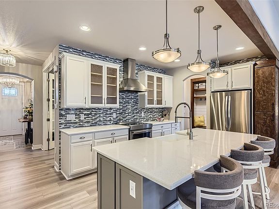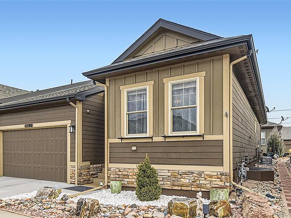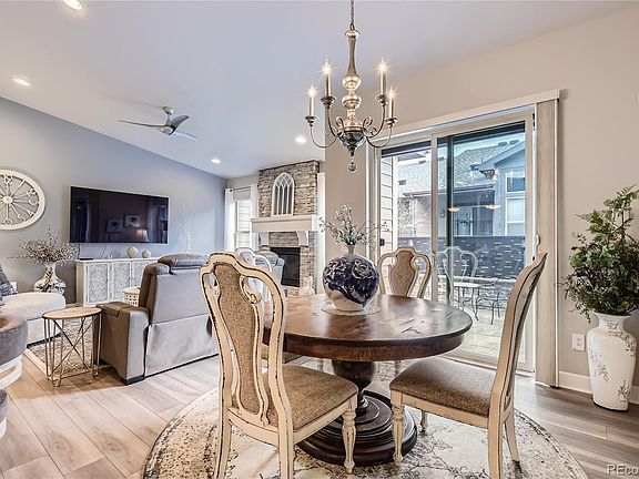 The finished basement is an entertainer’s dream. It includes a fireplace, two oversized bedrooms with egress windows featuring stamped cement designs, and a full bar with a fridge, microwave, wine fridge, dishwasher, and custom cabinetry. The bathroom offers stunning tile work. A large storage room houses a tankless water heater, Culligan water softener, sump pump, radon system, and upgraded HVAC. Ceiling insulation and a whole-home surge protector enhance efficiency. The newly poured driveway leads to a pristine garage with epoxy-coated floors, a new opener, and custom shelving. The landscaped front yard features low-maintenance xeriscaping with a drip line, while the backyard offers a peaceful retreat with a paver patio, privacy shield, and drainage system. Located near downtown Parker, shopping, restaurants, and trails, this home is a must-see!