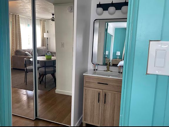 Fresh Design Touches: Aqua accent walls, contemporary lighting, mirrors, and coastal-inspired decor give the home a breezy, inviting atmosphere.