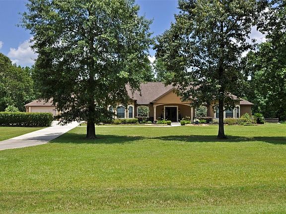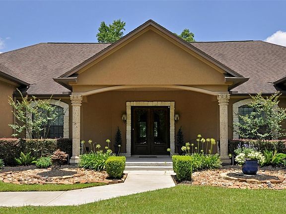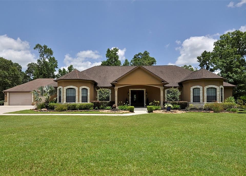 LARGE 3 ACRE LOT 10 MINUTES FROM THE WOODLANDS MALL. STUNNING 1 STORY STUCCO HOME. This fabulouse home has 4 bedrooms, 3.5 baths, located in WHITE OAK ESTATES. Country living but close to everything. Kirchen has SS appliances, huge granite island, and open concept with custom cabinetry in kitchen, family room, wine room ( sun room) with a wine fridge. Stunning views of backyard through large window. Formal dining and living room. Office/study can make a 5th bedroom. Master bedroom has a FLEX room attached and a huge master bath suite with shower and whirlpool tub. Large mud room with cabinets and granite counter adjacent to utility room. Front and Back covered porches. Amazing 4 car garage! NO MUD TAX, Low Property Taxes 2.01% and HORSES ALLOWED!! OPEN HOUSE CANCELLED FOR 10/27/2019