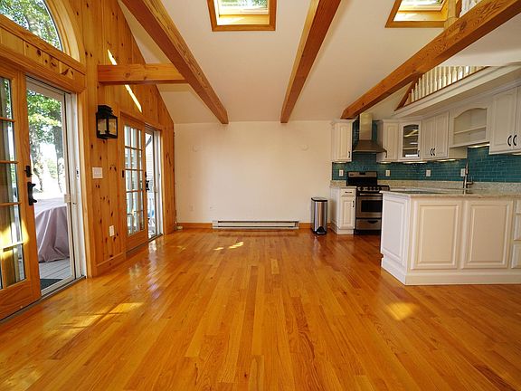 Dreams really can come true! You will have plenty of time to enjoy LAKE LIFE with this completely remodeled home on sought after Big Island Pond! As you open the door the SHOW STOPPING view will capture your attention and you will be drawn to the wall of glass/sliders but your focus will quickly be captured by the magic of the inside of the home! The walls are knotty pine and this wide open space with vaulted ceilings and loft space for an extra sleeping area complete with skylights to bring in all the natural light. The kitchen provides the perfect spot to cook when you have guests over with the open floor plan making entertainment easy! The bathroom is large with a tiled tub. There is no doubt that the deck off the livingroom will be your favorite spot to just chill and enjoy your morning coffee with the sunrise, a book with the sun shining down, or a glass of wine as the sun sets! This home has a private dock and comes with a Hurricane 115 HP boat so you are ready to start enjoying the lake immediately! Outside is the cutest bunkhouse ready for your imagination! There is a 1,000 buy in fee and and HOA approval is needed. Back on market. Buyer was unable to obtain financing(no issue with the financing of the home).
