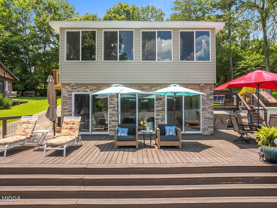 Gorgeous Lake front Home on Lake Sinclair... Oh the possibilities you can have with this home. With over 2,500 sqft 5 bedrooms and 3 baths.... Simply keep it for yourself, full time or part time. Also, Great potential for VRBO or Mother in Law suite with the finished basement area. This home has been completely gutted and so many beautiful things have been done to it. There's well over 100FT of water frontage with at least 10 feet of water depth at end of the dock. So much for entertaining outside! There's a play yard, hot tub, above-ground pool, dock, seawall, and a boat house with the power lift for the boat. There's 2 outbuildings for storage or possible man's cave? Be sure to ask for the sellers disclosure to see all of the updated and ages of AC, roof etc. Most everything is under 4 years old. This Lake home is move in ready and priced to sell!!