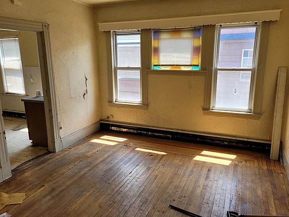 Great potential for this project 2 unit multi-family home in need of rehab. This property allows for potential spacious apartments and possible storage space in the garage area with work or additional yard if it were to be removed.