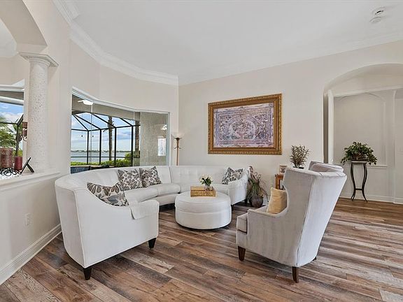 Welcome to Riviera Dunes, one of Southwest Florida’s premier boating communities and home to the region’s safest deep-water harbor. Perfectly positioned along the peaceful Manatee River, this neighborhood offers direct access to the Gulf in just 10 minutes. Included with this residence is a deeded marina slip that accommodates vessels up to 44’, Tucked behind the private gates, the home greets you with lush landscaping and a welcoming entryway. Inside, you’ll find an updated interior with luxury vinyl plank flooring that flows effortlessly through the living and entertaining spaces. The open kitchen is beautifully appointed with stainless steel appliances and connects seamlessly to the family and dining areas, making gatherings a breeze. Designed with flexibility in mind, the home features two full master suites and two additional guest bedrooms. The upstairs master is a true retreat complete with a walkthrough closet, coffee bar with sink, luxurious spa-style bathroom, and a tranquil balcony where you can sip your morning coffee while watching marine life below. Perfect for entertaining, the expansive sliding atrium doors disappear to create a seamless connection between indoors and outdoor spaces. Step outside to your sparkling heated pool and fully equipped summer kitchen—ideal for year-round Florida living. Additional highlights include a three-car garage, whole home water filtration system and a new AC unit. Enjoy access to outstanding community amenities, including a clubhouse, fitness center, tennis, pool, and an active pickleball community. This is more than a home—it’s a lifestyle. Welcome to your private waterfront retreat in Riviera Dunes.