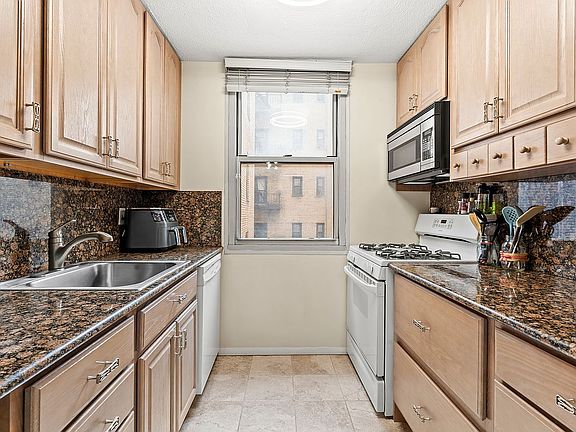 Discover the comfort and charm of this spacious, corner one-bedroom residence in the sought-after Park Lane South. Warm, neutral tones flow throughout, creating a welcoming atmosphere from the moment you step inside. A large entry foyer offers flexible space for dining or home office use and includes ample closet storage. The thoughtfully designed kitchen maximizes efficiency, featuring a unique layout with the refrigerator just outside the main kitchen area, allowing for expanded counter space and custom cabinetry that reaches the ceiling. Granite countertops and a matching backsplash complete this beautifully finished culinary space. The generously sized bedroom offers excellent closet space and the benefit of dual exposures, allowing natural light to pour in from the south and east throughout the day. The spacious living room is defined by plush carpeting, creating a cozy transition from the tiled foyer. The updated bathroom includes a full-size tub and plenty of room for storage and personal touches. Situated on the peaceful back corner of the building, this home enjoys a quiet setting with morning sunlight—an ideal place to unwind. Park Lane South offers full-time doorman service, an on-site superintendent, cats permitted (sorry no dogs!). Building amenities include basement laundry, both covered and uncovered parking (waitlist), and no flip tax. Perfectly positioned near Forest Hills, you're just moments from the subway, LIRR, express and local buses, airport transportation, Forest Park, Forest Hills Gardens, and more.