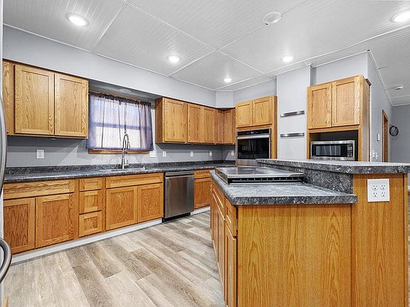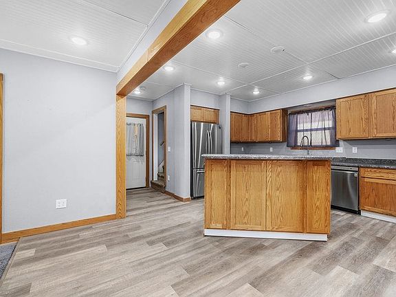 This recently renovated home offers small-town comfort with modern upgrades. Making it perfect for a full-time homeowner or a low-maintenance hunting rental. Inside, you'll find 2 bedrooms, two 3/4 baths, laminate flooring, and a beautiful kitchen with a large island and double oven. A tankless water heater adds efficiency and convenience. The property sits on two city lots with a fenced yard and great storage options: an attached one-stall garage plus a brand-new, insulated and heated three-stall garage built this year, ideal for ATVs, boats, or gear. Move-in ready, easy to maintain, and plenty of space for hobbies or equipment.