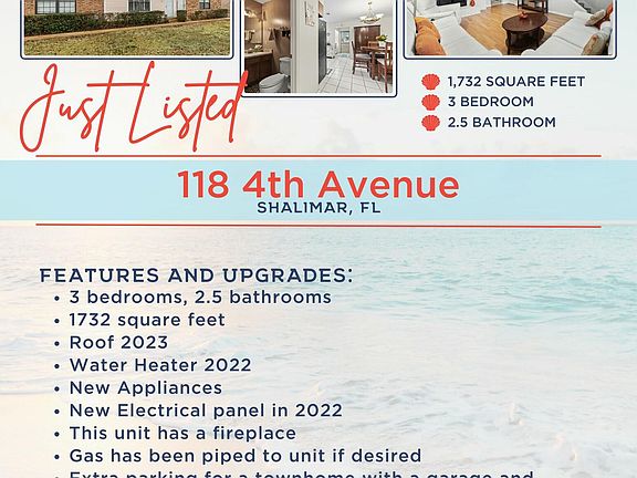 This spacious three bedroom, two bathroom townhome is ready for its new owner in Shalimar, Florida. At this wonderful unit you will find three spacious bedrooms upstairs, a private garage, living room with a fireplace, and the kitchen downstairs with an eat in dining area. You can rest easy because the roof was NEW in 2023, water heater installed new in 2022, electrical panel updated in 2022, updated bathroom and new appliances in 2022. The HOA covers your yard maintenance (including trimming and blowing), termite bond and pest control, exterior lights, garbage, and the mailbox system. Easy living awaits at this low maintenance unit, in close proximity to local sports, military bases, restaurants, schools, shopping, and more! Reach out to schedule your private showing today!