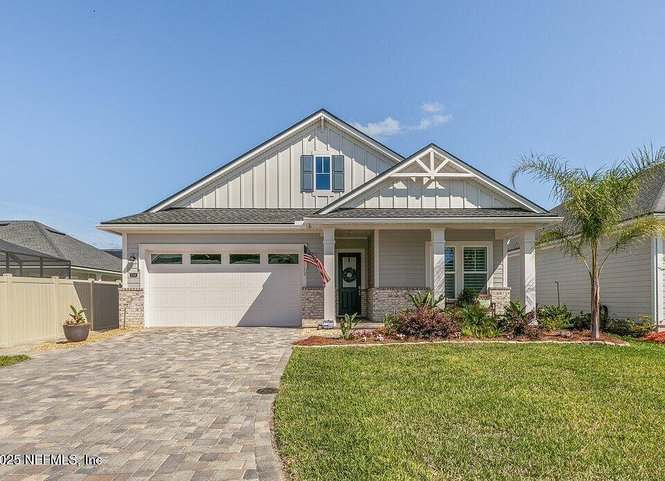 Welcome to this beautifully crafted Master Craft home, built in 2023 and nestled lakeside within the gated community of Madeira. This thoughtfully designed Tocoi floor plan offers 1,797 square feet of comfortable living with 3 bedrooms and 3 full bathrooms, perfect for those seeking both privacy and style. Full of additional upgrades since construction including decorative wood wainscoting, plantation shutters, updated landscaping with fencing and an extended paver patio! The home features a true split-bedroom layout, with a guest suite at the frontideal for visitors or a private home officeand the spacious primary suite tucked into the back corner of the home for added seclusion. The primary bathroom offers a fully tiled walk-in shower, dual vanities, and a generous walk-in closet. Enjoy relaxing mornings and peaceful evenings from the screened lanai overlooking a tranquil pond. The open-concept kitchen, dining, and living areas are ideal for both everyday living and entertaining. The kitchen is a home chef's dream with SS appliances, a gas cooktop, quartz countertops and an island that offers additional seating. Extra highlights include a paver driveway, fully fenced yard, and quality finishes throughout. Located in the sought-after Madeira neighborhood, residents enjoy access to community amenities like a pool, fitness room, natural beauty, and a convenient location just minutes from historic downtown St. Augustine and the beaches. Enjoy!