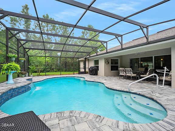 Back on market due to buyer financing falling through. Move-in-ready 4-bedroom Palm Coast pool home with no HOA and 2,208 sq ft of open living space. Built in 2018, this updated home features an inviting saltwater pool with paver lanai, granite countertops, stainless steel appliances, a coffee bar, and a formal dining room that opens to the main living area. The split floor plan includes a versatile flex room ideal for a 4th bedroom, home office, or playroom. The private primary suite offers two walk-in closets with chandeliers, double vanities, and a large tiled walk-in shower. Located in a no flood zone and close to Palm Coast shopping, parks, and beaches. A must-see Florida pool home!