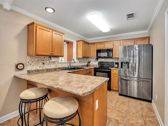 Welcome home to this charming single-level retreat surrounded by beautiful oaks on a large spacious lot. With a new roof, new HVAC, and a large back deck, this home blends comfort, charm, and functionality. The kitchen features a unique coastal backsplash, wood cabinetry, and stainless-steel appliances.