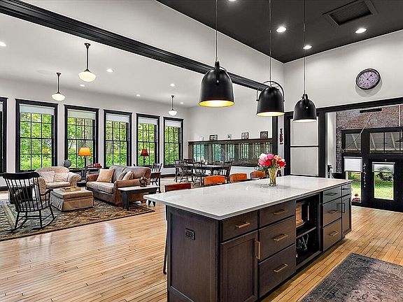 A truly rare find, this beautifully restored 1916 brick schoolhouse blends historic charm with striking modern design. Nestled in Southwest Michigan's scenic wine country & surrounded by woods & farmland, this former K-8 school is now a dramatic yet comfortable retreat. Soaring 12-foot ceilings, wood floors, & oversized windows flood the open-concept living space & bedrooms with natural light from morning to night. Renovated top to bottom in 2020, the home features a fully equipped stainless steel kitchen with a 10-foot island & a cozy gas fireplace, perfect for entertaining or relaxing. Original details like a vintage chalkboard in the dining area add nostalgic charm, while the two spacious bedrooms each offer a full bath with glass-enclosed showers. One suite includes a beautifully refurbished cast iron soaking tub for ultimate relaxation. Outdoor living is enhanced with a spacious deck & also a firepit area. Located within 20 mins of area beaches & less than 90 minutes to Chicago.