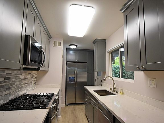 Very rare, thoroughly remodeled luxury single-level duplex located in the heart of Los Gatos. One of the two units is currently available and features 3 bedrooms, 2 baths, fenced backyard, enclosed courtyard and patio at the front entry, plus an adjacent 1 car garage and 1 additional parking space in front of the garage. Location, luxury, privacy, access to a neighborhood pool by paying annual membership fee. This property offers something for everyone! Located in the tree-lined Blossom Manor neighborhood of Los Gatos, with an easy walk across the street to Lunardi's, Peet's, Whole Foods, Philz, and several other shops and eateries. This is a beautiful home in a prime Los Gatos location. Also features easy commute access to Highway 17, and is only a walk or bike-ride away from Netflix Corporate headquarters. Garage is pre-wired for an electric vehicle charging station. This gem of a home, with a thorough luxury remodel just completed, includes all new appliances, new flooring, new cabinetry, new plumbing fixtures, new paint, new heating, new air conditioning, new water heater, new washer dryer, attached garage, fully landscaped and fenced yard in front, back and sides Tenant pays for all utilities, water, garbage, electric. Owner pays for sewer. 1 car garage, 1 driveway parking space, additional parking at street.