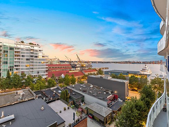 Welcome to this sophisticated 2 bed, 2 bath view home in Promenade at The Quay. This BRIGHT CORNER HOME features PANORAMIC OCEAN, CITY & MOUNTAIN VIEWS and a thoughtfully designed layout with an abundance of natural light. The GOURMET KITCHEN features integrated Bosch appliances, GAST STOVE and a large breakfast bar that opens up the living area, making it perfect for entertaining. The primary suite features a SPA-LIKE ENSUITE and WALK-IN CLOSET. The OVERSIZED COVERED PATIO is ideal for unwinding and enjoying the harbour views. Built by award-winning Polygon, this LUXURY CONCRETE BUILDING is just six years old and features AC, and hotel-like AMENITIES including concierge, gym, party room, outdoor lounge, and a dog wash station. Includes one parking. OPEN HOUSE SAT, OCT 4 2-4PM
