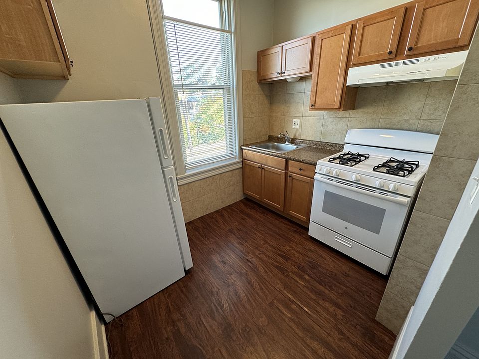 Downtown Elgin! - 1 Bedroom unit features hardwood floors, newer kitchen and bath, window a/c. Plenty of natural light throughout! Street parking. Cats okay. Coin laundry in basement. Walking distance to casino, Metra and downtown area with many shops and restaurants! Tenant pays utilities including cooking gas and electric heat. 1 month security deposit and pet fee. 116-118 Center St in Elgin, IL is a residential property that consists of 7 units. The property is located in a convenient and accessible location, offering easy access to local amenities and transportation options. Each unit in the property is likely to have its own separate entrance. Most units have 1 bedroom, 1 bathroom, and common areas. The property has a shared spaces, (laundry room And storage area for tenants)