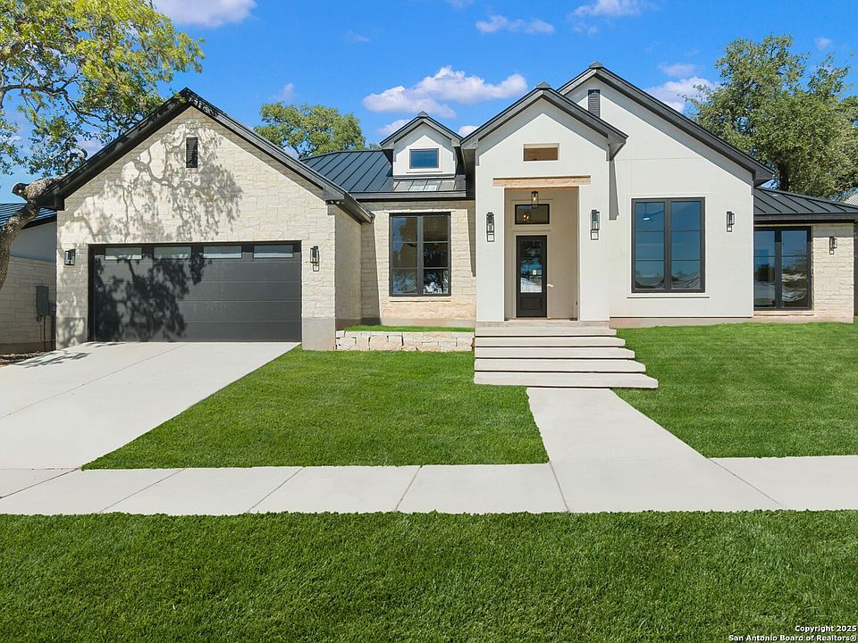 New construction and refined contemporary design come together in this impeccably crafted single-story estate. The open layout is bright and inviting, wrapped in walls of windows that highlight the home's elevated finishes, including hand-scraped hardwood floors, designer lighting, and custom ceiling treatments. The chef's kitchen centers the home with its oversized island, professional-grade stainless steel appliances, gas cooking, floating shelves, and built-in cabinetry, all opening seamlessly to the family room. The primary suite offers a true retreat with a spa-inspired bath featuring a soaking tub, walk-in shower, and a generously sized closet with extensive built-ins. A dedicated office sits toward the front of the home, while the additional guest bedrooms provide comfort, space, and thoughtfully finished details. Outdoors, a large covered patio creates a quiet, private setting ideal for relaxing or entertaining.