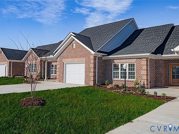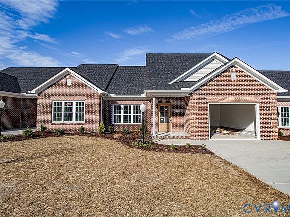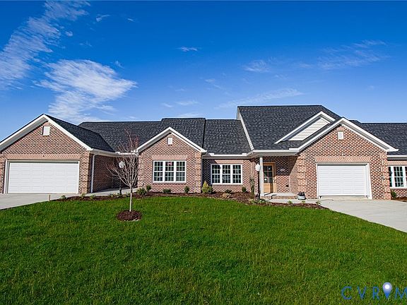 Discover effortless, single level living in this beautifully appointed 1,351 sq. ft. rancher located in the desirable age restricted community of Cobblestone. With 2 spacious bedrooms, 2 full baths, and an inviting rear patio, this all brick home offers modern elegance with low maintenance comfort. Step inside to a bright, open living room featuring vaulted ceilings and stunning waterproof hardwood flooring throughout. The kitchen and baths showcase luxurious quartz countertops, a ceramic tile backsplash, and custom painted cabinetry. Enjoy stainless steel appliances, a ceramic tile shower, and tastefully tiled bathrooms designed with quality and style in mind. A dual-fuel heat pump and tankless water heater provide year-round efficiency. Distinctive quoin-corner brickwork, a mahogany wood front door, and lush front yard sod with irrigation add refined exterior touches. Move-in ready and crafted with exceptional detail, this Cobblestone rancher is the perfect blend of comfort, style, and convenience.
