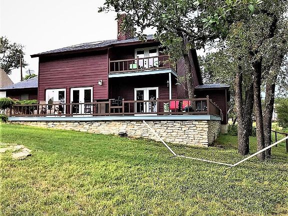 Southwestern style complements ideal lake setting Adjoining Expansive Government land & path to water complete estate. MAIN FLOOR: Separate Living & Dining areas brightened by French doors offering lake views & entrance to wraparound deck. Driveway winds along to Peaceful front porch flowers & shade trees. Kitchens' quartz counters, decorator appliances & plentiful cabinets create a joyful gathering atmosphere. Welcoming Living space: Rock fireplace and stained concrete floors . ISOLATED GUEST WING has 2 bedrooms & well appointed bath. UPPER FLOOR: Master Suite, private balcony with exceptional lake view. Oversized garage! Celebrate sunsets, wander lake paths Just Be. Enjoy + benefit as ideal vacation rental !
