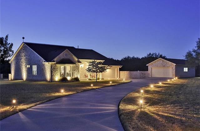 Absolutely beautiful and well thought out country living home. Situated far off of 71, on just over 3 acres in a protected view corridor setting, this home isn't too far from convenience, yet just far enough for peace and serenity. Easy living and flexible floorplan featuring 5 bedrooms or 4 bedrooms and his/her offices, plus formal dining AND enclosed porch room. So well-maintained, it is like new! Enjoy the large fenced yard with room for play, a pool, or continue the garden already thriving in place. Hobby space is already planned for with the workshop off the main garage, and the additional detached two car garage set up as a wood shop. Enjoy the privacy of country living, with the peace and comfort of a thought-out neighborhood, only 15 minutes to Marble Falls and 25 minutes to Bee Cave. Double Horn Creek neighborhood features amenity center with pool, covered pavilion, sand volleyball court, playground, basketball court and pond. Truly a fine property.