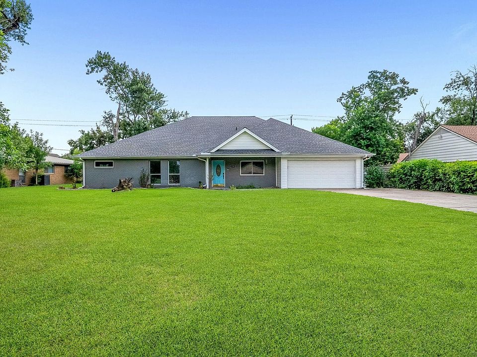 Spacious and versatile single-story home offering an abundance of living space, thoughtfully designed for both comfort and functionality. Features include a dedicated study with front-facing windows, a light-filled breakfast nook with backyard access, and a kitchen equipped with granite countertops, double ovens, a gas cooktop, and ample cabinetry. The generous primary suite boasts dual vanities, a soaking tub, and a walk-in shower, while secondary bedrooms provide plenty of room for family or guests. Durable wood-look plank, tile, and stained concrete flooring flow throughout. Outdoors, mature trees shade the oversized yard, complete with playset, basketball pad, and covered patio for year-round enjoyment. Aerial views highlight the expansive lot in a peaceful neighborhood with convenient access to local amenities. Home is being sold as is and ready for you to put your own finishing touches on it!