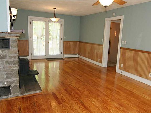 Neat & clean 2 bed Ranch w/ country kitchen, fresh paint & sparkling hardwoods, double fireplaced livingroom w/ french doors to deck & patio. Attached garage & large shed plus attic storage. Set on 4 acres of land.