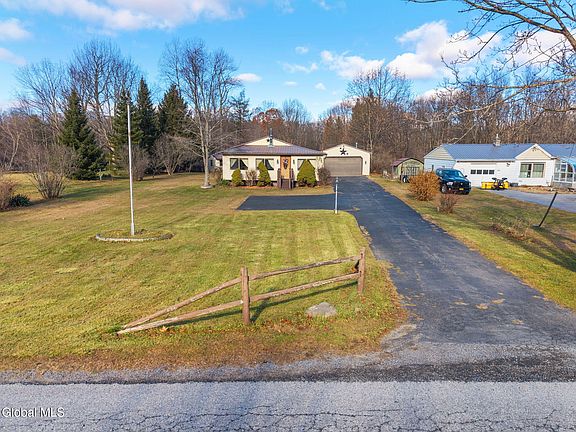 Welcome to this quaint 3 bedroom ranch nestled on a spacious one acre lot in desirable Charlton. Located on a quiet country road within Burnt Hills School District. Warm and inviting, this home features beautiful hardwood floors, metal roof, new furnace (2024), Vermont Castings stove and central air for year round comfort. Step inside to admire the gorgeous stonework on the family room fireplace, a perfect centerpiece for cozy evenings. Enjoy peaceful mornings in the enclosed side porch or unwind on the charming front porch/living room with wood stove & hot tub overlooking your serene surroundings. Car enthusiasts and hobbyists will love the heated 2 car garage, with additional workspace off the back. An extra garage/shed in the backyard offers abundant storage for tools, equipment, and all of your outdoor toys. A wonderful blend of comfort, character, and country living—this lovely ranch is ready to welcome you home.