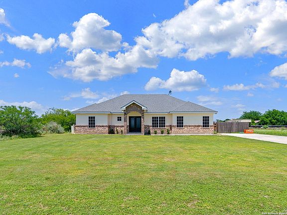 Discover the splendor of this stunning home and its exquisite details. Upon entering, you'll be greeted by a grand open-concept living and dining area, perfect for hosting gatherings with loved ones. The fabulous kitchen is a chef's dream, featuring ample countertop space, beautiful cabinetry, and a kitchen island with casual bar seating. The serene and spacious primary bedroom boasts high ceilings and an en suite bathroom with a vanity and stunning tile work in the shower. Two additional bedrooms provide ample space for customization. The backyard is an entertainer's paradise, featuring a covered patio and plenty of grassy space to make your own. Located near Choke Canyon Reservoir and State Park in Three Rivers, this home offers many nearby opportunities for outdoor activities. Come see this magnificent home and make it yours.