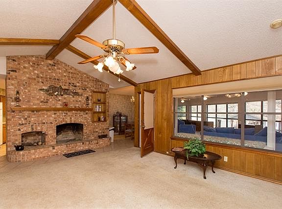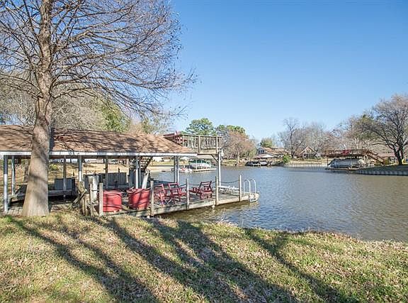 Lake home in a quite country neighborhood perfect for a full time residence or weekend home. Country kitchen with breakfast nook, formal dining room, living room with WBFP and a wet bar, bonus living area over looking the lake. 3 Bedroom, 2.5 Baths, large deck for entertaining on lake side of house. Wonderful party deck on top of boat dock, in a large cove access swimming near dock. Additional 500 16 x 20 outdoor living area under beautiful large trees.