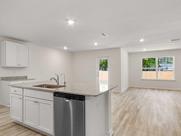 Welcome to 118 Dockside Road, This spectacular floor plan is a 4-bedroom, 2-bathroom home with a two-car garage. The Cali floor plan features a large covered front porch with space for a sitting area. As you enter this home you will find a long hallway leading to the living area. Two bedrooms are off the entry with a full bathroom in between. Across the hall is a fourth bedroom and large laundry room. The fourth bedroom is a perfect space for a den or even a home office. Continuing down the hall, you will find yourself at an open kitchen with center island, a large dining space and comfortable living area. The primary bedroom is found at the back of the home and features a large bathroom with dual sink vanity, separate shower, large soak tub and a large closet.