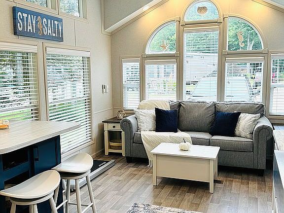 2021 immaculate park model boasting 850 sq feet of beach house living- Located 5 min to the Westerly Town Beach and 8 min to Misquamicut beaches this beach house is located in Timber Creek open 5/1-10/31 the park offers, two pools, tennis, pickleball, disc golf, 9 hole golf course, bocce, dog park, baseball field, laundry on site, live music and DJs every weekend, kids events (pirate scavenger hunts, face painting, hay rides, bounce houses, etc.) and adult entertainment (corn hole tournaments, around the world parties, card games, Christmas in July and Halloween, etc,) this site comfortably sleeps 10 people with a 3 season durabilt room that has AC/heat. Fully furnished with 4 smart TVs, two brand new queen mattresses and new modular couch purchased June 2025. Remote shower with 7 settings, nest thermostat for cellular control, remote lighting, keyless door entry, two fire pits with outdoor tv and partially covered deck. Two sheds, two outdoor covered grills. Includes all the dining essentials like toaster, air fryer, cutlery, ninja creami. Water filtration system with tankless water heater. Town sewer/water and trash removal. A beautiful beach house with all the upgrades. $8,600 annual 2025 fee included. Bring your clothes and you’re home…. It’s the best gated beach community!