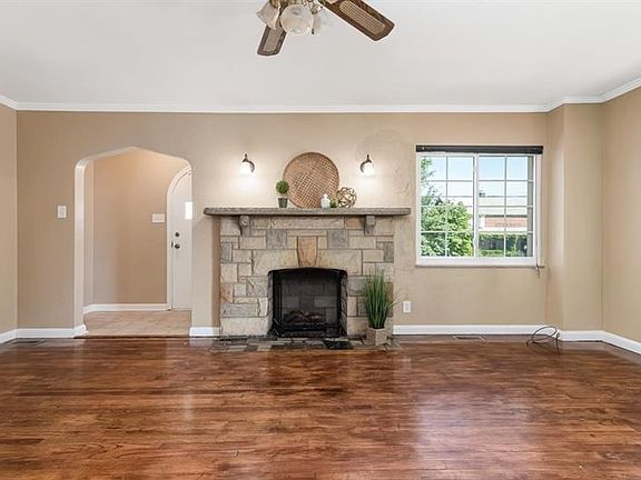 Oh. My. Goodness. Charm abounds in this brick stunner with outstanding bones and a yard to match! Enter through the curved front doorway and come back to a time when craftsmanship was king! Bright rooms with plaster walls and gorgeous dark hardwood floors. Curved archways, special nooks, this house gives you all the feels. Large living room with wood burning fireplace, extra large dining room, big kitchen which could take a center island, and an adorable side porch complete with swing (just bring your coffee). One sizable bedroom on this level could be a guest room or home office! Take the hand crafted wood stairs to the 2nd floor which once again gives way to spacious, sun soaked hardwoods. Moody master with walk-in custom closet system. Additional bedroom is light and bright. The AMAZING backyard is flat and fenced - and a walkway leads to the brick 2-car detached garage with storage above. Everything about this home screams space! New roof and more! Close to bus stop. Rare find!