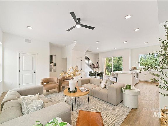 Rare luxury new construction near downtown! Just minutes from parks, the Greenbelt, and Boise’s vibrant urban core, Boise23 delivers high-style, low-maintenance living in architecturally modern, vertically designed townhomes. These homes offer thoughtful, efficient floor plans, elevated interior finishes, and a seamless blend of indoor and outdoor living. Expansive windows on every level invite natural light throughout the day and frame beautiful open views of the surrounding neighborhood. Your private outdoor spaces include a fenced front yard, a welcoming patio, and a spacious balcony—ideal for morning coffee, entertaining, or simply unwinding. The main level features a generous foyer, functional mudroom, and versatile bedroom/office, with direct access to an oversized 2-car garage with ample storage potential. Upstairs, the heart of the home unfolds in a light-filled open concept layout with 10' ceilings, showcasing a designer kitchen with modern cabinetry, a center island, and quartz surfaces. The adjoining dining area and great room offer abundant space for gathering, while the balcony extends your living space outdoors. A stylish powder bath completes this level. The 3rd floor hosts both the primary suite and well-appointed guest bedrooms. The luxurious 5-piece primary bath features a freestanding soaking tub, spacious walk-in closet and a refined spa atmosphere.