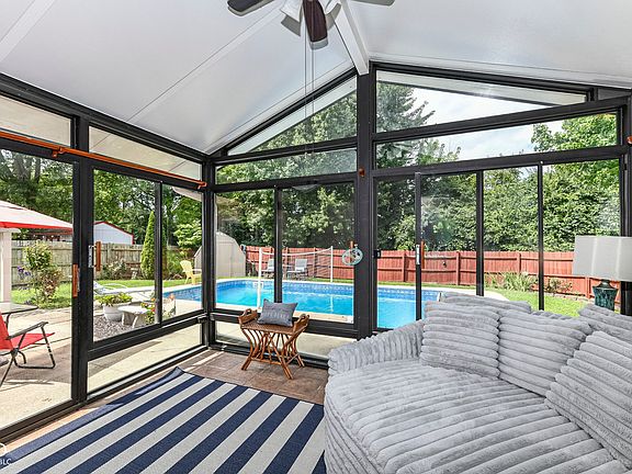 HEATED POOL? say what?! Charming Greenwood home conveniently located on Main Street between 31 & 135 near shopping, dining, and schools. Extend your summer in the lovely heated swimming pool, complete with sports package volleyball net. Watch beautiful sunsets from your sunroom with floor to ceiling windows ~ the perfect spot to relax or entertain. Fully fenced rear yard includes mini-barn and plenty of space for gardening/recreation/relaxation with extra property behind the fence. Inside you'll love the open, spacious dining & family room with built in shelving and a corner gas fireplace to keep you cozy in winter months. Open, spacious kitchen with vaulted ceiling, white cabinets, pass thru to dining room, center island, pantry & breakfast bay. Spacious primary suite with garden tub/shower, two closets, linen closet, wide vanity space & enclosed water closet. Guest rooms have w-i-c, huge windows, new carpet. Hall linen closet, recently updated bathroom w/full shower, pedestal sink, transom windows. Laundry room has built in cabinets. Newer windows, new carpet in beds 2 and 3. Roof was replaced in 2023. DON'T MISS!