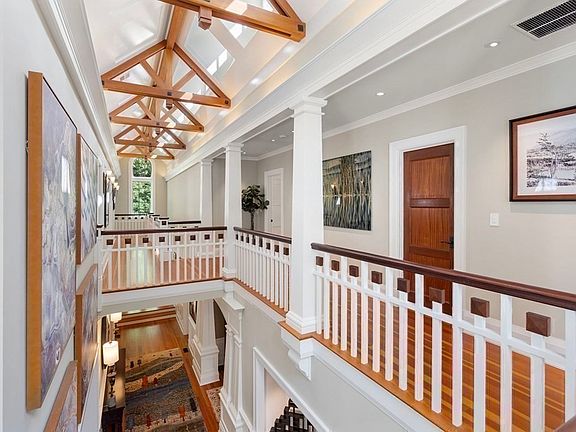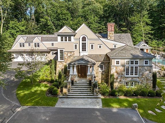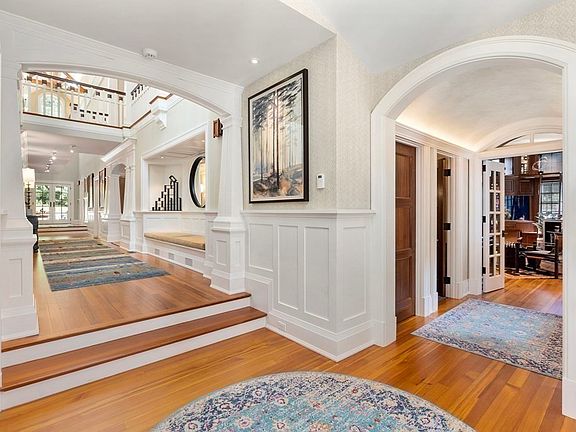 A stately, gated entrance opens to a tree lined drive leading across the bridge to this magnificent country manor. It is a true masterpiece constructed and recently enhanced and renovated by a renowned local builder. The estate was thoughtfully designed on 3 private acres to capture the elements of nature, and natural light, showcasing comfortable elegance throughout. Upon entering the open foyer, the "spine" of this masterful form of architecture creates various patterns of light throughout the day, seamlessly connecting the first and second levels, while highlighting the art gallery. This 17 room residence offers 5 generous bedrooms, including the renovated primary suite, with spa like bath, coffee station and deck overlooking the pool. Many new features to enjoy- heated salt water infinity pool with waterfall, pool house, outdoor shower, fabulous golf simulator, lounge with custom bar, incredible 3 season porch with fireplace, outdoor kitchen, and gym. Access to walking trails.