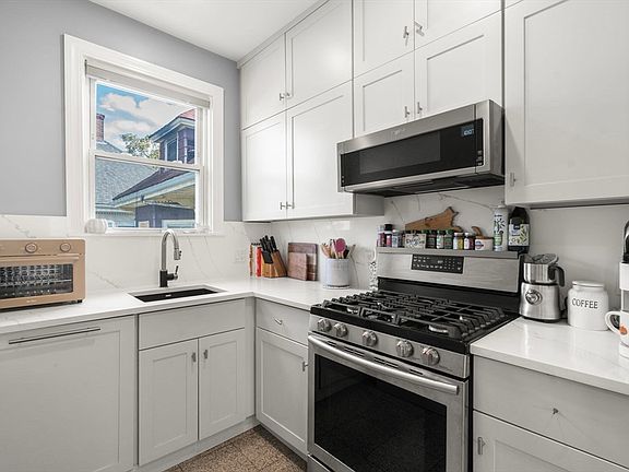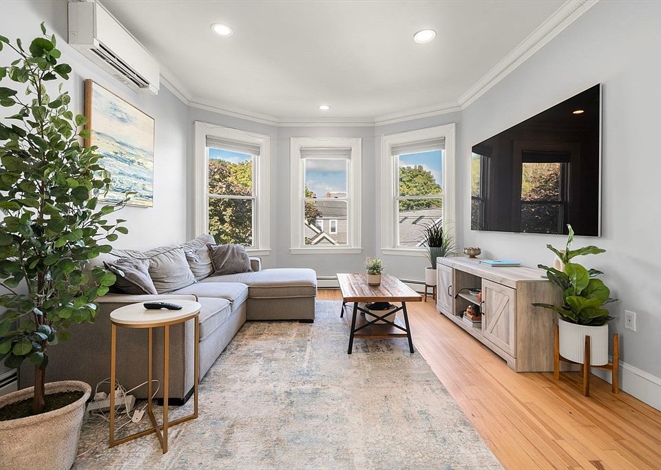 Beautifully updated and filled with natural light, this top-floor 3-bedroom, 2-bath condo is located on a picturesque tree-lined Brookline street. The open living and dining area flows seamlessly into the modern kitchen, featuring hardwood floors, high ceilings, and detailed moldings throughout. The spacious primary suite offers a full bath and large walk-in closet, complemented by two additional bedrooms for flexible use. A private, deeded roof deck provides the perfect outdoor retreat. Additional amenities include in-unit laundry and ample storage. Conveniently situated just steps to shops, restaurants, and public transportation.
