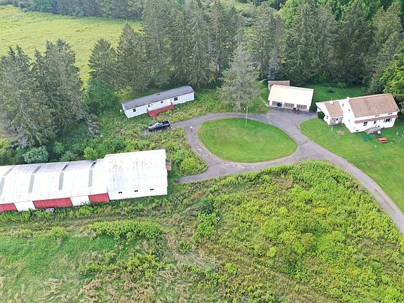Income opportunities abound with this farm property featuring 50 acres of agricultural land, 5 bedroom, 2 bath farmhouse with attached 1 car garage, two mobile homes and large two story barn in good condition. Main farmhouse is quaint with its retro-style, currently occupied by a long term renter with an excellent payment history. The house also includes a separate 1 bedroom efficiency with private entrance which could be rented as well. In addition there are two mobile homes: 3 Bed, 2 bath double wide with back deck; and a 3 bed, 1 bath single wide. There is a 3 car detached garage with concrete floor and electric, all situated well set off the main road, down its own private lane. The farmland is mainly level and easily worked, with ~50 acres of tillable land, former hay fields, some planted to timothy and clover now - which serve as large food plots for attracting the local whitetail deer. A 40'x30' gambrel roof, two story dairy barn is in solid shape and connects to an additional 82' long x 36'wide pole barn, offering many potential uses for livestock, horses, storage or workshop/home business. There are two ponds on the property, and a stream cuts through the back acreage with springs providing ample water supply to wildlife or livestock in addition to the swimming and fishing in the ponds. There is a mix of hardwoods, largely maple and cherry, providing future timber opportunities as well as hemlock, red and white pine. Deer runs were prevalent through the property and several nice buck rubs were noted. Based on the diversity of the property including ag fields, woods, brush for cover, multiple water sources with ponds and streams, this property supports a diverse wildlife population including wild turkey, grouse and other small game. Multiple fishing, hunting, hiking and year round nature enjoyment are available very close by with Chenango Lake, 133 acres of water and an informal public access hand launch, where you can fish for bass, pickerel and the annually stocked tiger musky. Ambler State Forest is only 5 miles from this property and offers 629 additional acres for hunting, hiking & camping. While this property is nicely set well back off the road, amenities and shopping are available only 4 miles away in Norwich and Oneonta is less than 40 minutes. Within an hour, you can be in Binghamton or Cooperstown (Baseball Hall of Fame, Museums, Restaurants) and it's located only 3 hours from NYC/George Washington Bridge. This property has a lot to offer the new owner: new home or vacation/hunting getaway with great hunting, farming, and additional income opportunities.