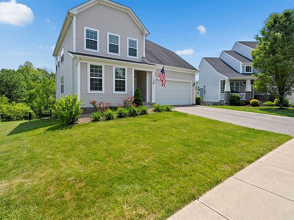 Cul-de-sac location and Seneca Valley SD are where you will find this 5 BR home w/2car attached garage, covered front door and 9' ceilings. First-floor guest bedroom with NEW carpet, perfect for visitors or multi-generational living. Dining room, complete with wainscoting and tray ceiling. Chef's kitchen is a true highlight, w/large island, double oven, gas cooktop, granite countertops, & stylish backsplash, making meal prep a breeze. Deck off kitchen is perfect for relaxing or entertaining. Living room boasts tall windows, custom blinds, ceiling fan and NEW carpet. Master suite boasts tray ceiling and impressive walk-in closet. Owners bath has tiled shower, dual sinks, and water closet. 3 additional generously-sized BRs, full bath, and convenient laundry room round out the 2nd floor. Unfinished lower level offers great potential, w/full bath rough-ins and walkout to patio which overlooks fenced backyard. NEW H2O tank just installed. Less than 5 minutes to Rt19 & I79. 25minutes to Pgh.