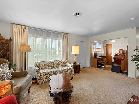 Check out this adorable home, updated bathroom with tiled shower, tile flooring and double sink vanity. Updated kitchen and cabinets. 3rd bedroom has been converted into an open office off of the living room, could be converted back. Detached garage has additional room for crafts, shop or storage. Covered RV parking with extra alley space for RV, boat or additional covered parking. Great starter home or even rental possibilities.