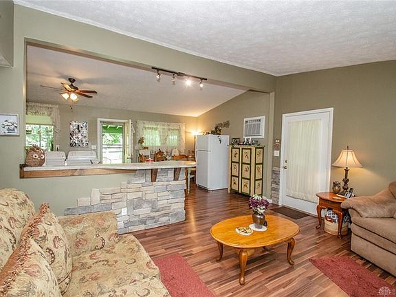Adorable 3 bedroom 1 bath home in Bellbrook near downtown and the Little Miami River, nestled on a shady corner lot with mature trees. Bright light open concept with cathedral ceiling & nice wood laminate floor in main living area. Lovely covered back patio with picket fence great for relaxing. Great starter or downsizing home! Quiet friendly neighborhood. Near shopping and dining. In highly rated Sugarcreek school system.