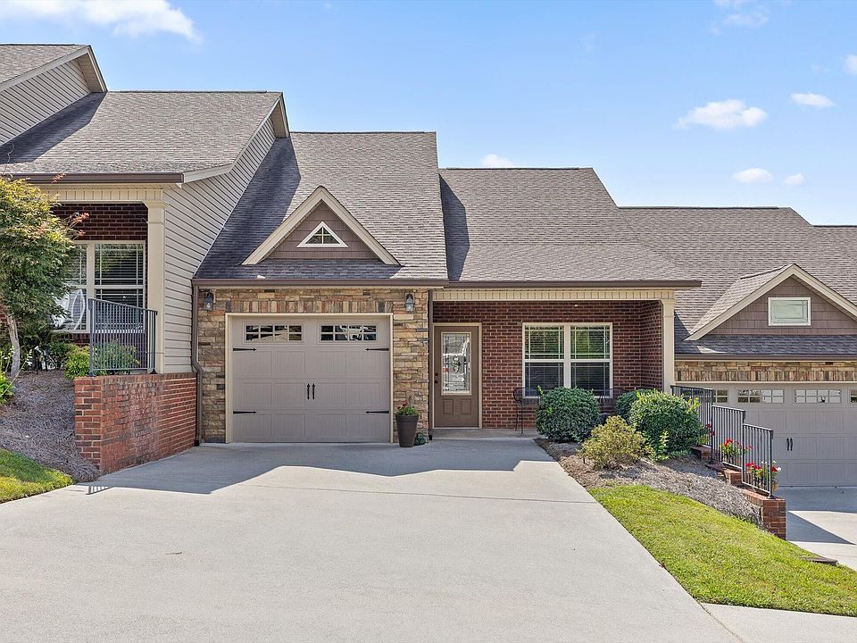 Welcome home to 118 Hillouse Lane in the Highlands Townhome Community! This beautiful one-level townhome offers the perfect blend of comfort and convenience in a gated neighborhood just minutes from I-75. Inside, you'll find an open and inviting floor plan with granite countertops, stainless steel appliances, and a cozy fireplace that makes the living space feel warm and welcoming. The home features a mix of engineered hardwood, tile, and soft carpet in the bedrooms, as well as oil-rubbed bronze fixtures throughout. The spacious primary suite includes a walk-in closet, and the covered back porch is the perfect spot to relax and enjoy the peaceful setting. With charming curb appeal featuring rock, brick, and vinyl exterior, this home truly has it all.