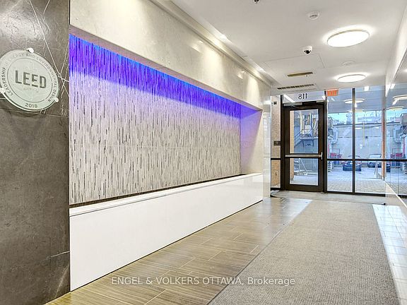 Enjoy this excellent location..one of the most walkable areas in Ottawa. 2 bedrooms, 2 baths.Floor to ceiling windows with electric blinds. Den area,(2.0x1.75) is actually an alcove with custom cabinetry. Super kitchen. Fantastic building amenities include 4th floor expansive rooftop terrace, party room, gym and meeting area. Garage parking with EV infrastructure in place.There are 2 condominium corporations..one for building ..one for parking. Condo located in Northeast corner of the building. Building name,The Vibe, says it all!