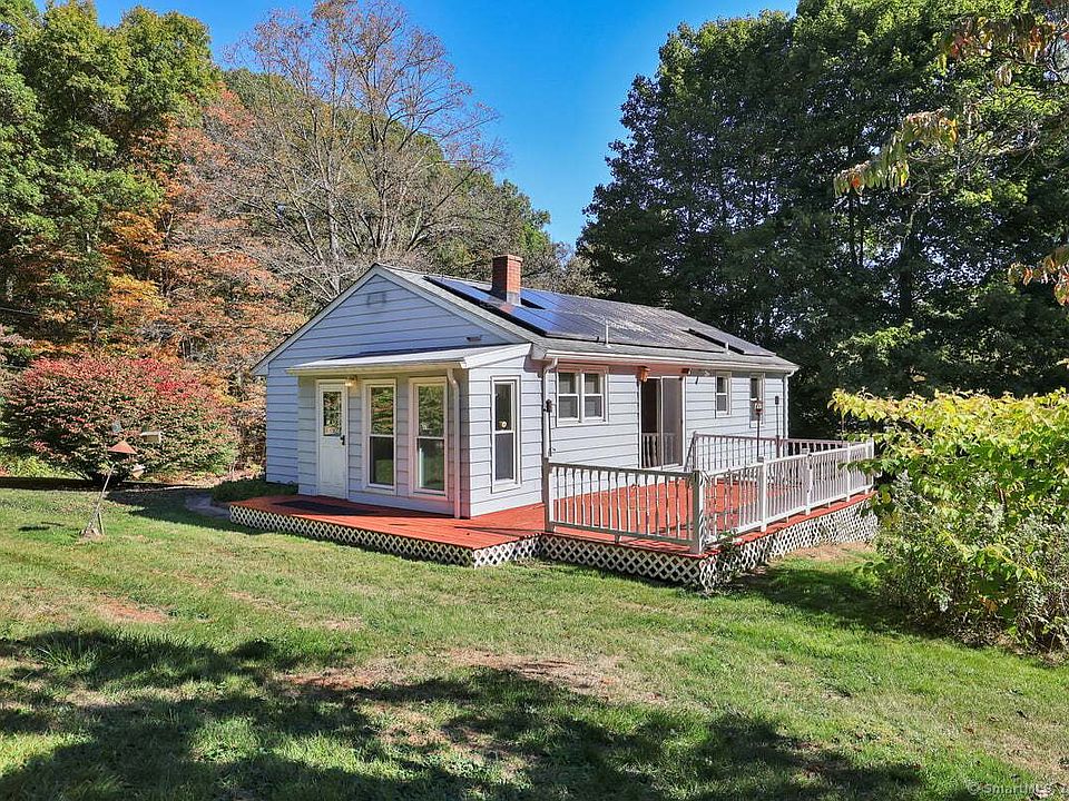 Discover the charm of this cozy two-bedroom ranch set on almost an acre of land in a private, peaceful setting. Tucked away and abutting open space, this property offers the perfect retreat for those seeking quiet and nature right at their doorstep. The dining area has sliders that lead out to the back deck. Hardwood floors throughout. Enclosed porch area. This home features solar panels for energy efficiency, helping you save money while living sustainably. A tandem garage provides plenty of storage or parking flexibility.