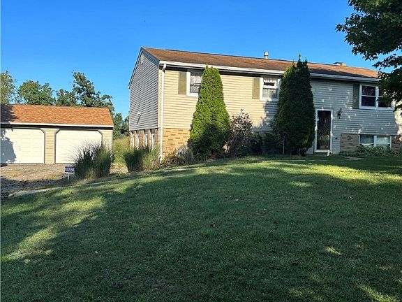 The home has newer roofs and newer hot water tank and newer furnace and whole-house air conditioner. There is a deck off the dining room which steps down to access the large country-like back lot. The finished basement has a huge 4th bedroom with a walk-in closet, and a large family room with a wood-burning fireplace and walk out sliding-glass door. There is a powder room in the basement. The basement has a large laundry room with a walk out-door. There is no water bill because this property has well water with an additional reserve tank. It has Septic Tank sewage, so no sewage bill either. The attached 2 car attached garage has two additional rooms in the back, a man door and a large door to access a riding mower.