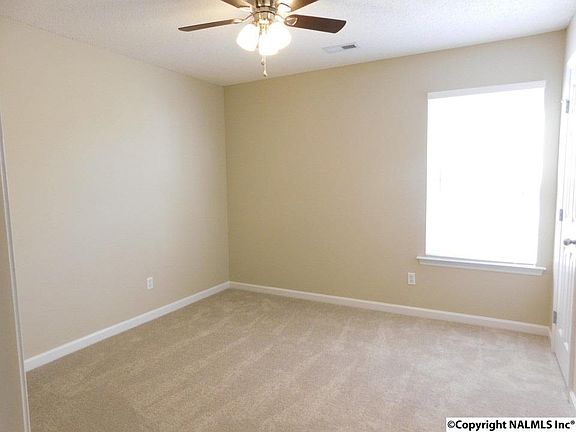 Newly renovated home in quiet neighborhood with private back yard and covered patio. New carpet and new paint throughout. Hardwood floor in living room, foyer and office. New ceiling fans throughout. Vaulted ceiling in living room. Comes with home security system. Just minutes to Research Park, Redstone Arsenal and Bridgestreet!