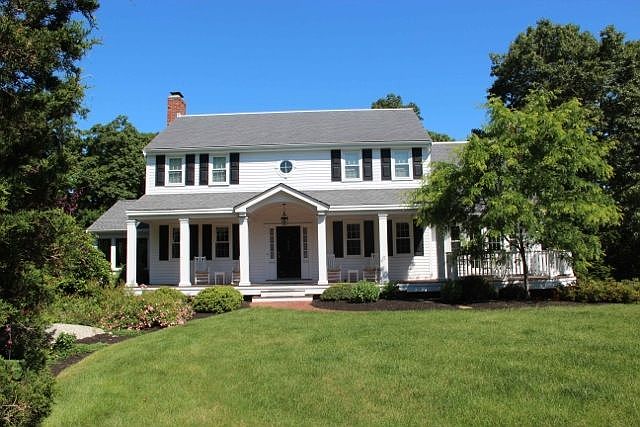 Farmers porch welcomes you to this totally renovated seaside colonial in coveted Jerusalem Road location. Entertainment size kitchen/family room combo features top of the line appliances and custom cabinetry; screened porch with vaulted ceiling, wood burning fireplace and high-end craftsmanship; study addition features walls of windows, mahogany floors, coffered ceilings and custom stone gas log FP. High end baths and master suite with dressing area. HW floors and AC throughout. Finished walk out LL.Set on over 2 acres in Steep Rocks neighborhood walk to beach and village.