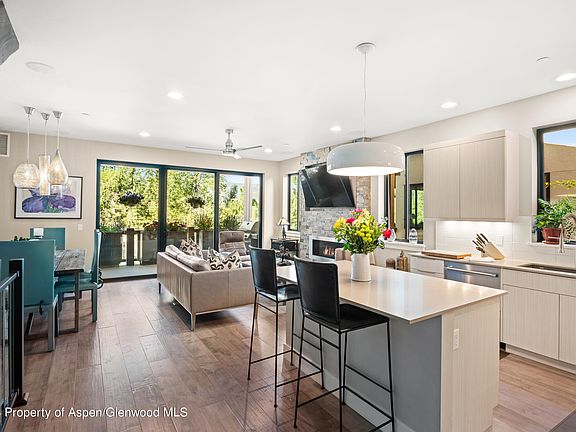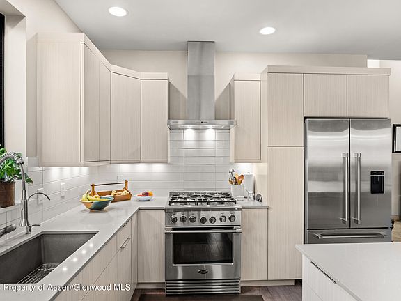 Epitomizing luxury, comfort, and sophistication, this three-bedroom, four-bathroom 2017 mid-valley townhome has it all. The design palette includes many custom upgrades added by the original owners who have taken meticulous care of the property. The top floor master (primary) suite has its own private balcony with stunning views of Mount Sopris. The ensuite bathroom is complete with a freestanding soaking tub and glass shower, dual sink vanity and oversized custom closet. The living room and kitchen occupy the main level with an open concept entertainment space, gas fireplace with a stone facade, elegant dining area and full-length deck behind the sliding glass doors. The trés chic chef's kitchen has top of the line Fisher Paykel stainless steel appliances, pantry, and cabinets with pull-out drawers for ease and organization.