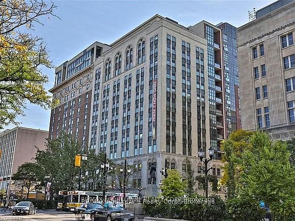Luxurious Condominium Living At The Royal Connaught, An Elegant 664 square foot 1 bedroom In The Downtown Core Of Hamilton. Located On King Street East Between The Niagara Escarpment & Waterfront Trail, Offering Breathtaking Panoramic Views Of The City & Lake Ontario. A Short Walk To The Art-Deco Go Station Which Offers Regular Trains To & From Union Station. Convenient Access To 403.Comes with parking .
